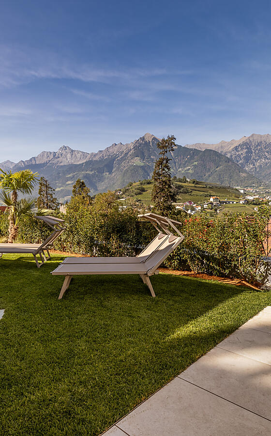 Doze on the roof terrace, immerse yourself in the greenery or sweat and relax with a view of the summit: that is how wellness works in the villa district of Maia Alta.